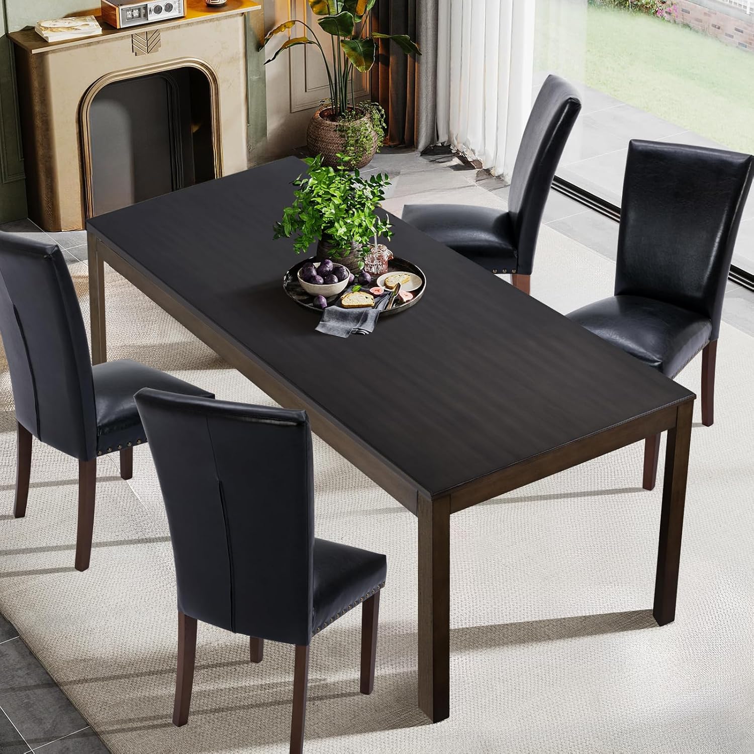 Rectangular Dining Table for 6, Wooden Kitchen Dining Room Table Dinner Table for 4 with Square Legs, Brown