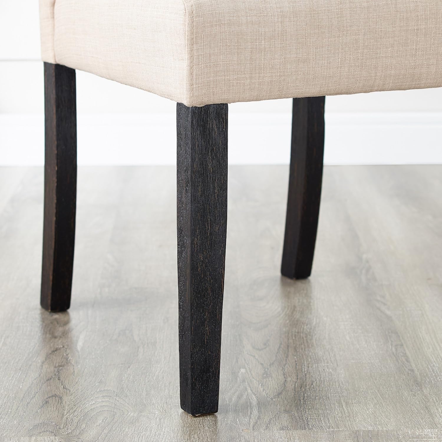 - Button tufted for a tailored look, the Solid Wood Tufted Dining Chair upgrades your kitchen or dining room. This set includes two ‘s style dining chairs. The wood frames are armless design and finished in espresso for a contrast to the polyester fabric upholstery.