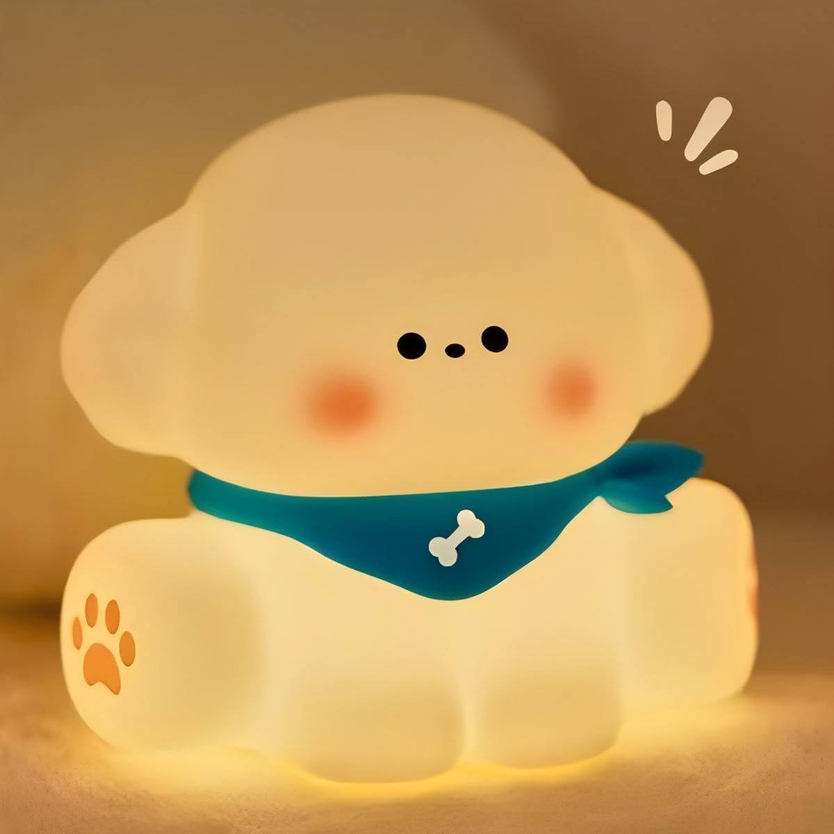 Squishy Puppy Night Light, Cute New Year Night Light as Gifts, Rechargerable Dimmable Nursery Soft Touch Bedside Baby Night Light, Portable and Wireless